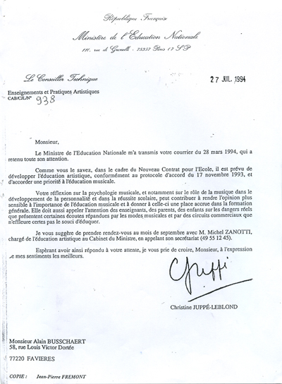 Et ALAIN BUSSCHAERT, Ex-Professeur à l’Ecole Normale de Musique de Paris, musicologue, Conférencier en psychologie musicale.