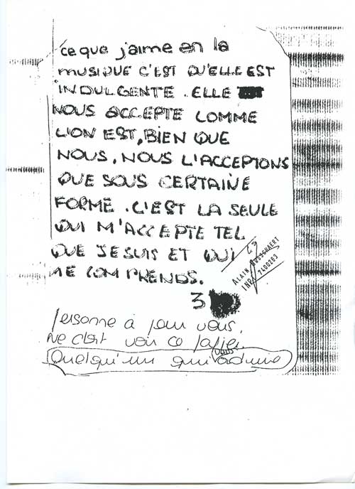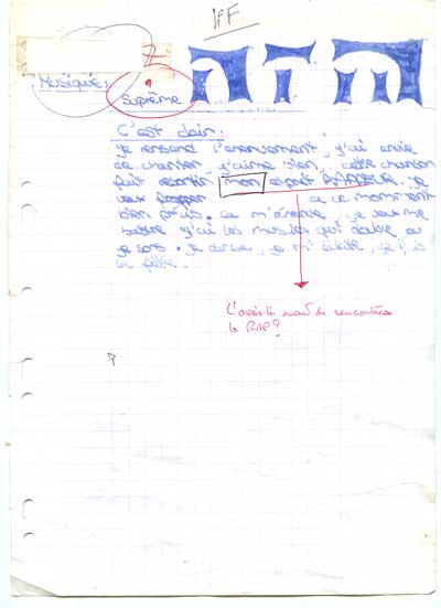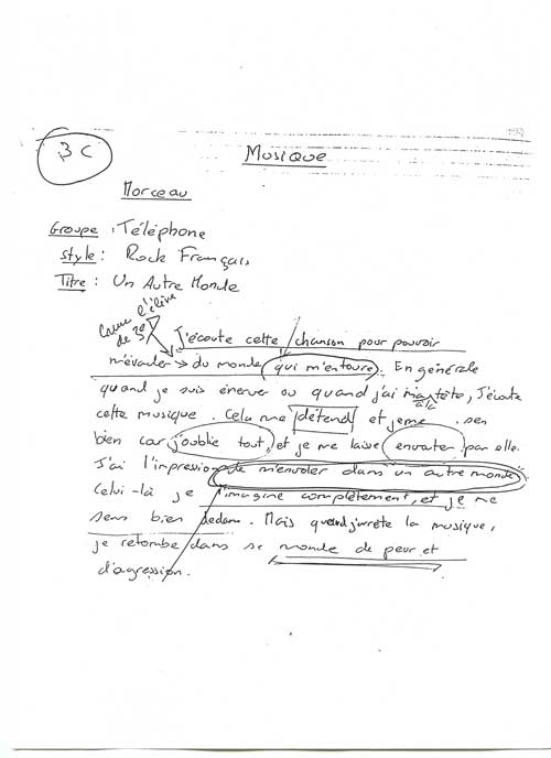 « Ce que j’aime en la musique, c’est qu’elle est indulgente. Elle nous accepte comme l’on est, bien que nous ne l’acceptons que sous certaines formes. C’est la seule qui m’accepte telle que je suis et qui me comprend »… ( une élève de 15 ans).