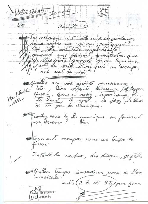 J'ai écartéd'entrée 50 questionnaires où aucune information ne me permettait d'affirmer que la musique avait un rôle important ou prépondérant dans la vie de ces jeunes.